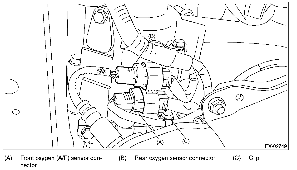 CAUTION: When removing the rear oxygen sensor, wait until exhaust pipe cools, otherwise it will damage the exhaust pipe.