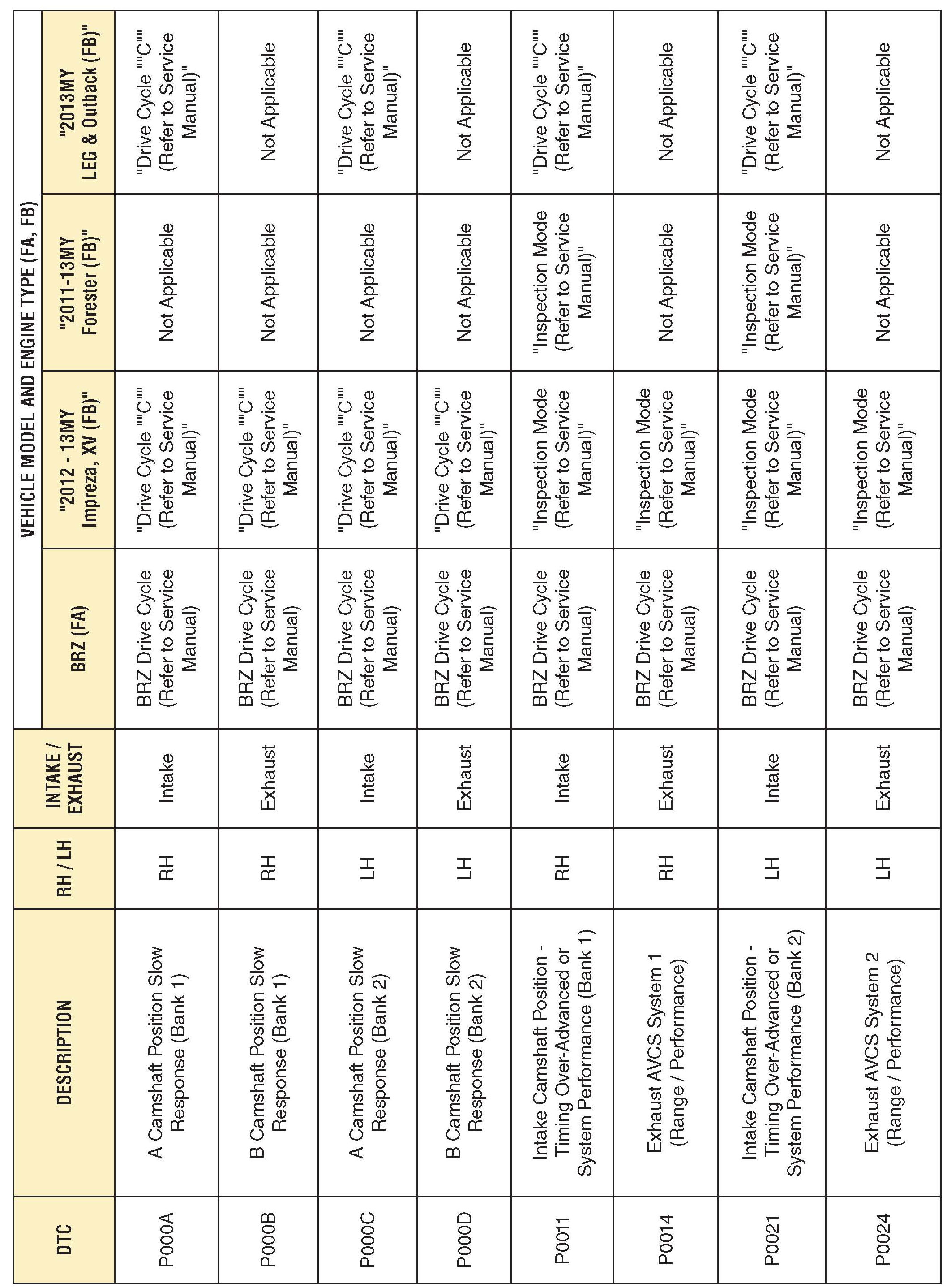 *DTC P0011 and P0021 are applicable to Forester models only.*