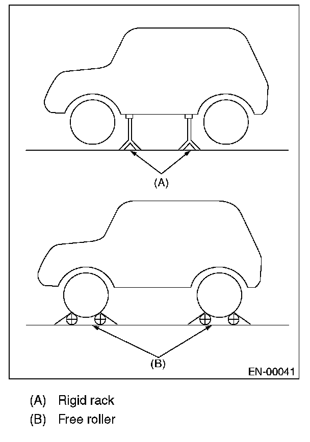 2. Lift up the vehicle using a garage jack and place it on rigid racks, or drive the vehicle onto free rollers.