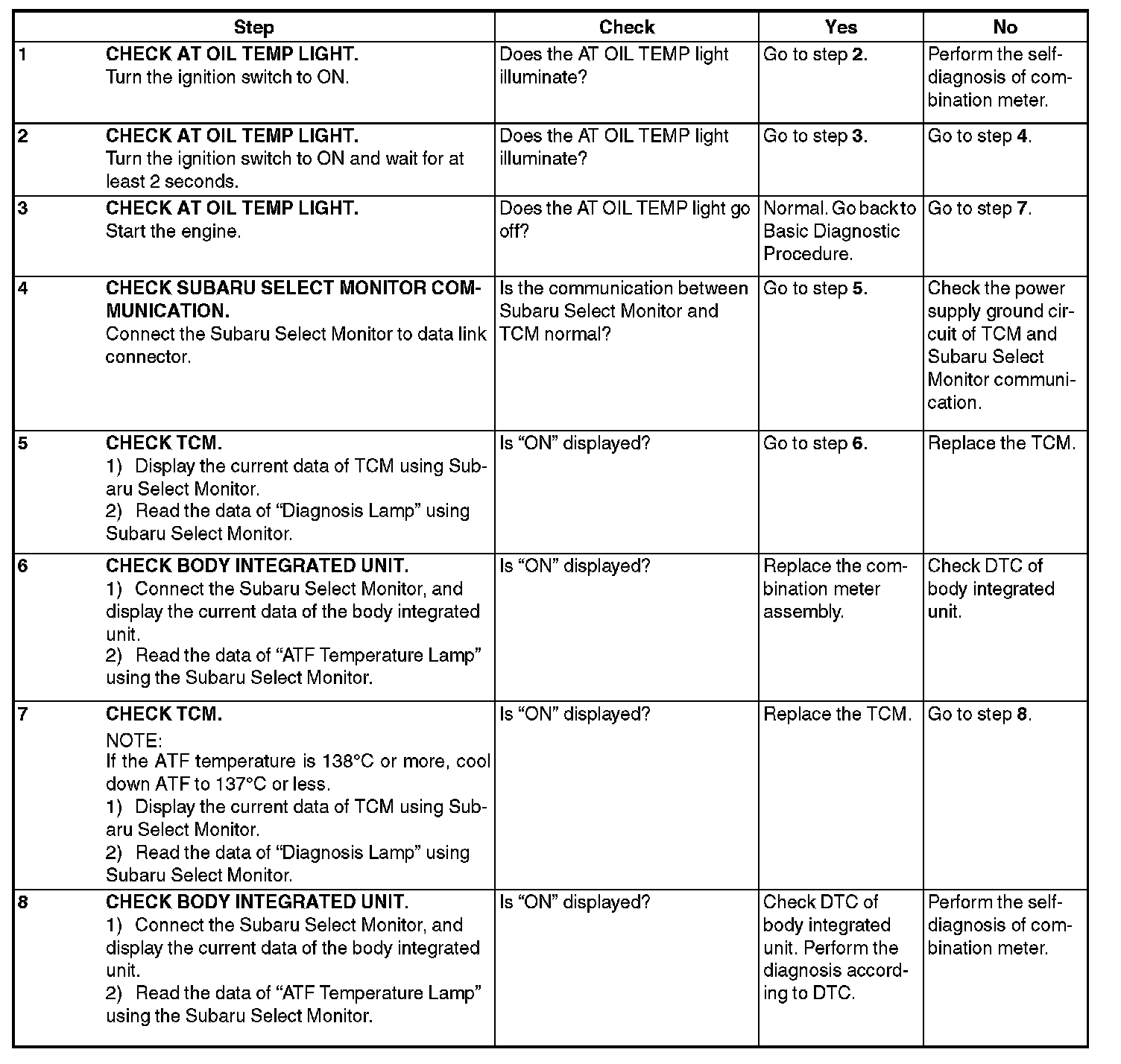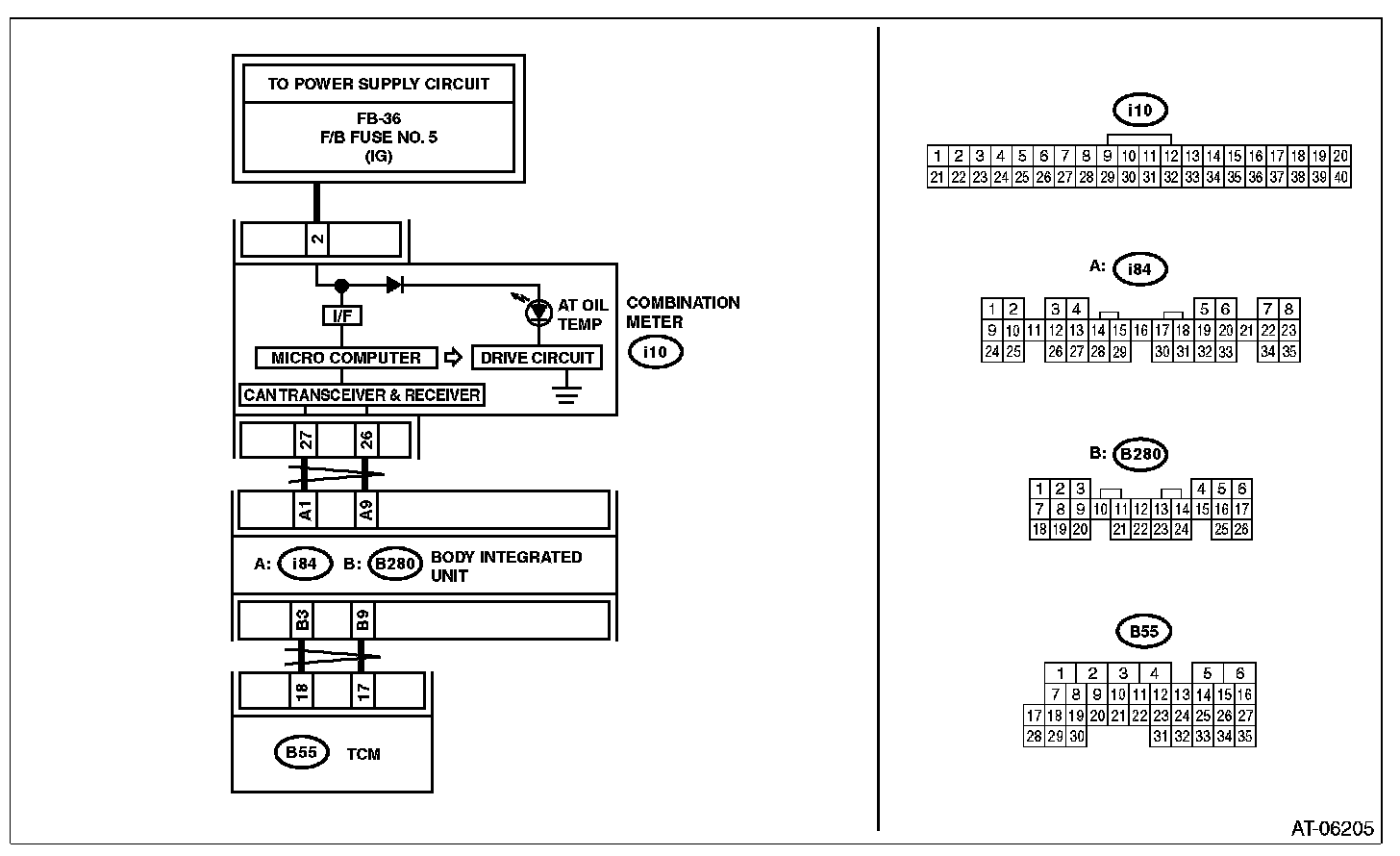 When the AT OIL TEMP light does not operate normally, check the AT OIL TEMP light circuit.