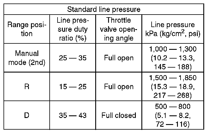 (2) Measure the line pressure when the select lever is in "R" or 2nd gear of manual mode with engine under stall conditions.