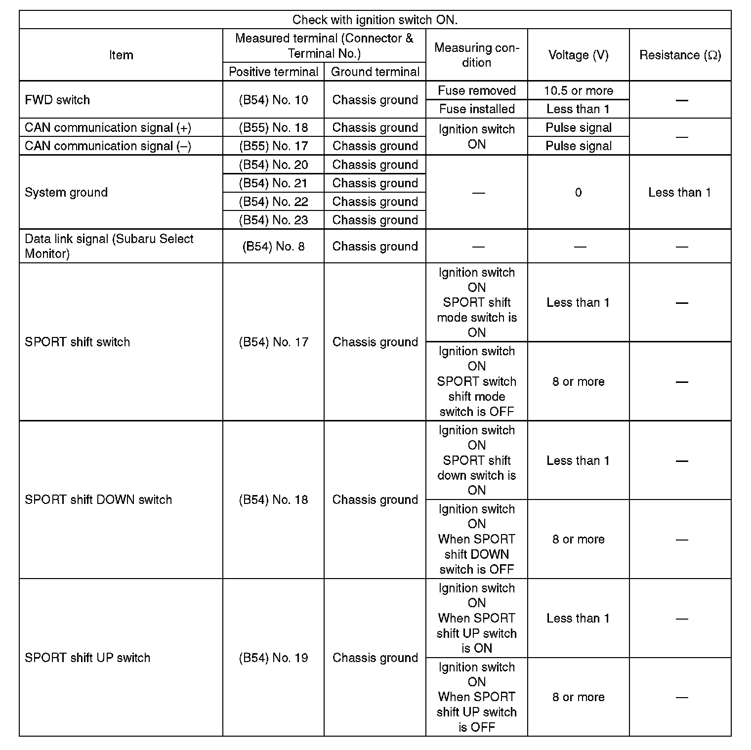 Pinout Values and Diagnostic Parameters