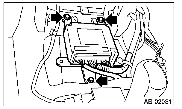 7. Remove the three bolts and remove airbag control module.