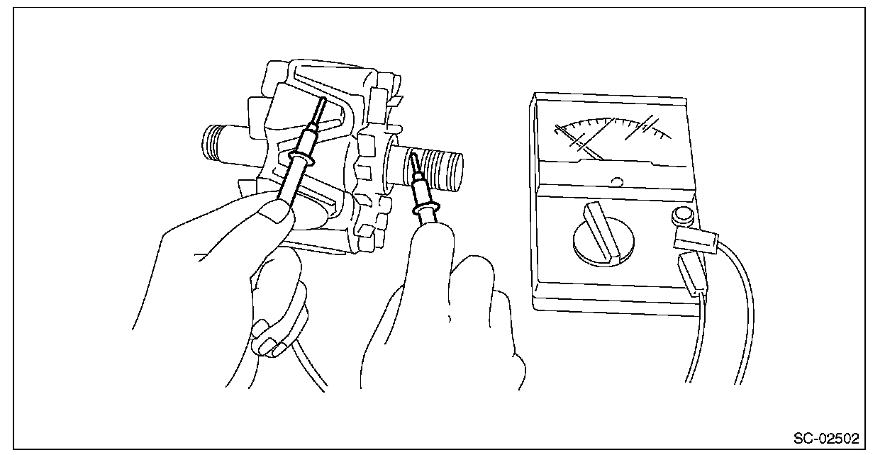 CAUTION: There is the possibility of damaging the diodes if a mega-tester (used to measure high voltages) or a similar measuring instrument is used. Never use a mega tester or equivalent for this test.