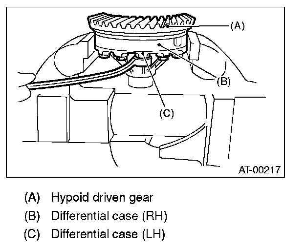 (1) Install the SUBARU genuine axle shaft to differential case.