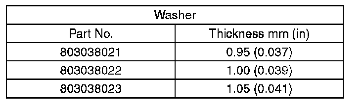 (3) If the backlash is not within specification, select a washer from the table below.