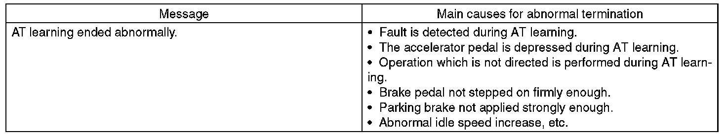 ^ If the message "Execute AT learning again after fixing troubles of the vehicle" appears, select [OK] and display the DTC list. After repairing the locations indicated by the DTC, start the "AT learning mode" over from the beginning.
