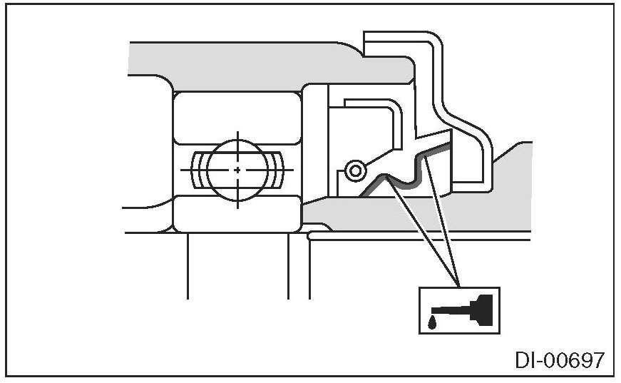 ^ Apply differential gear oil to the lips when installing the oil seal.