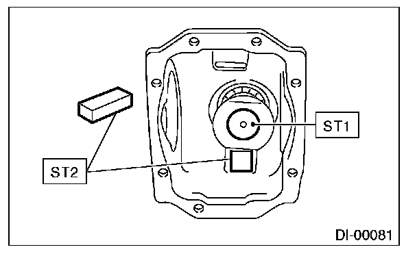 (1) Install the rear bearing race into the differential carrier using ST1 and ST2.