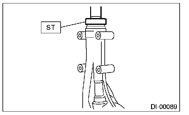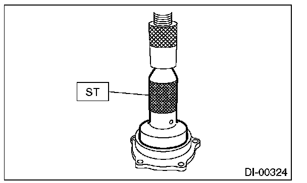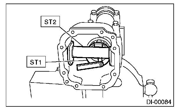 (2) Install the front bearing race to the differential carrier using ST1 and ST2.