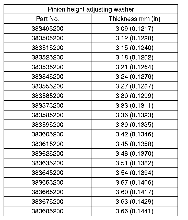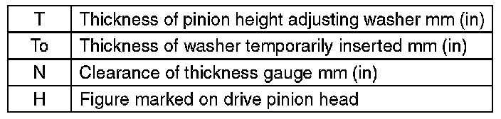 (3) Obtain the thickness of pinion height adjusting washer to be inserted from the following formula, and replace the temporarily installed washer with this one.