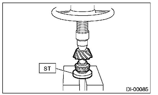 14) Using the ST, press-fit the side bearing cone to the differential case.