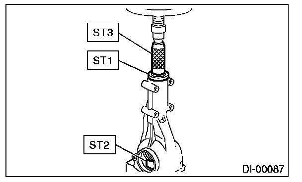 5) Press-fit the front bearing cone into case with ST1, ST2 and ST3.