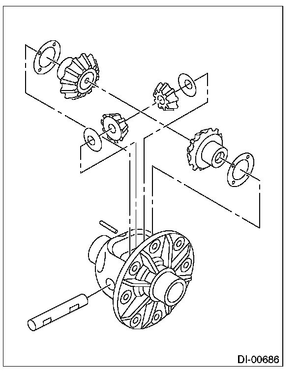 ^ Apply differential gear oil when installing the bearings and thrust washers.