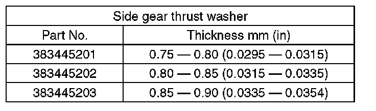 (2) Adjust the backlash as specified by selecting side gear thrust washer.