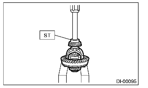(3) Insert the ST1 into carrier with the pinion height adjusting washer and rear bearing cone fitted onto it.