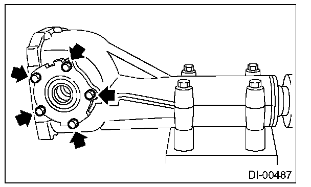 Be careful not to hit the teeth of hypoid driven gear against the differential carrier.