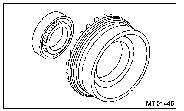 2) Install the bearing outer race to the transmission case.