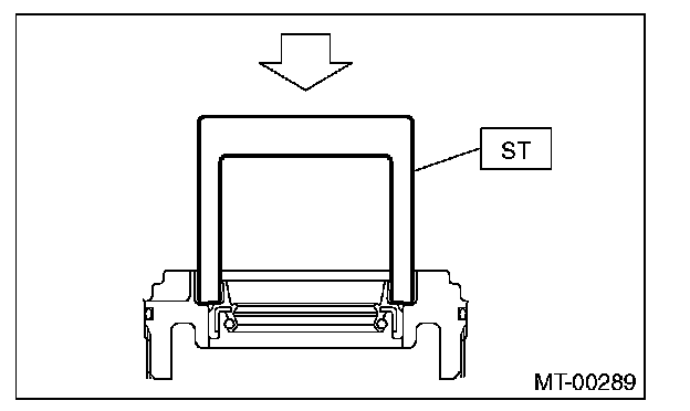 ^ Apply transmission gear oil to the oil seal lips, and install the oil seal while being careful not to deform the lip.