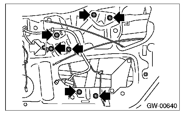 3 Remove the bolts, and then remove the front regulator and motor assembly.