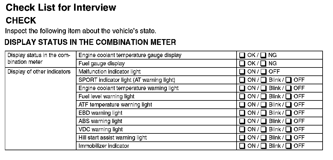 DISPLAY STATUS IN THE COMBINATION METER
