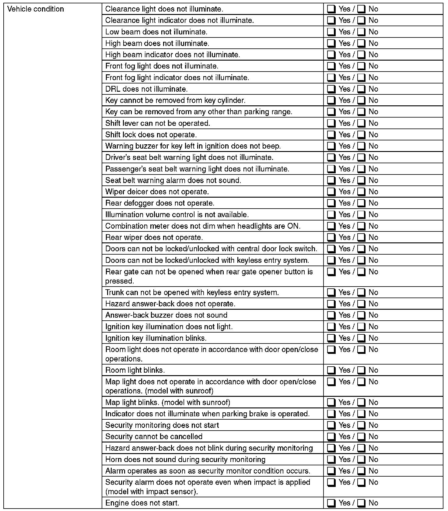 Inspect the following item about the vehicle's state.