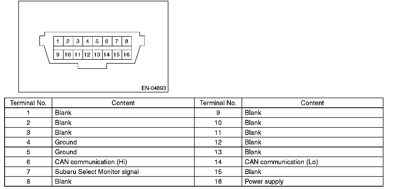CAUTION: Do not connect any scan tools other than Subaru Select Monitor or general scan tool because the circuit for Subaru Select Monitor may be damaged.