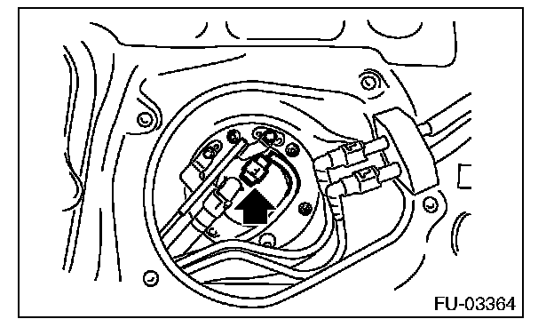 - Align protrusion (B) of the fuel sub level sensor to the cutout in the fuel sub level sensor upper plate.
