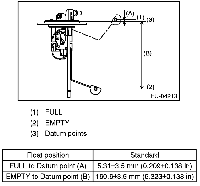 Measure the fuel sub level sensor float position.