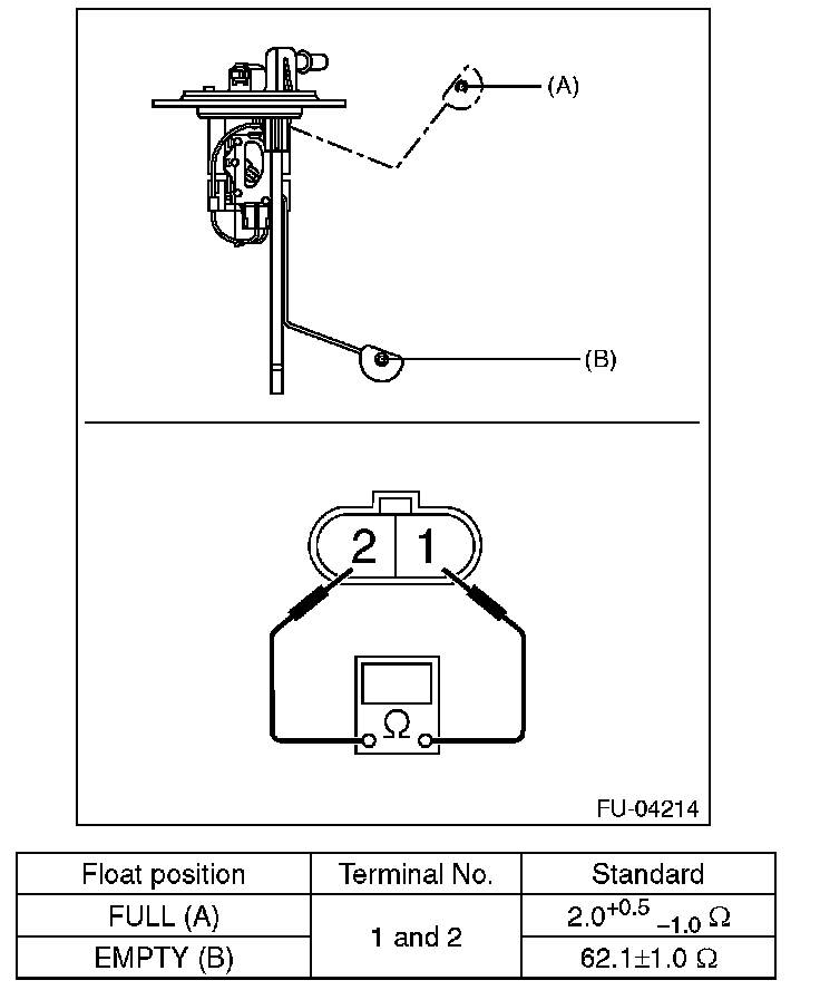 Measure the resistance between fuel sub level sensor terminals.