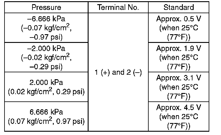 CAUTION: Do not apply pressure out of the range of -10 - 20 kPa (-0.1 - 0.2 kgf/sq.cm, -1.45 - 2.90 psi). Doing so may damage the fuel tank pressure sensor.