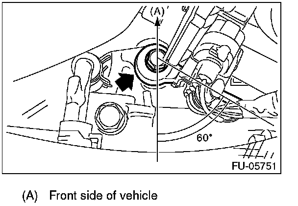 NOTE: The portion of the knock sensor cord that is pulled out must be positioned at a 60 ° angle relative to the engine rear.