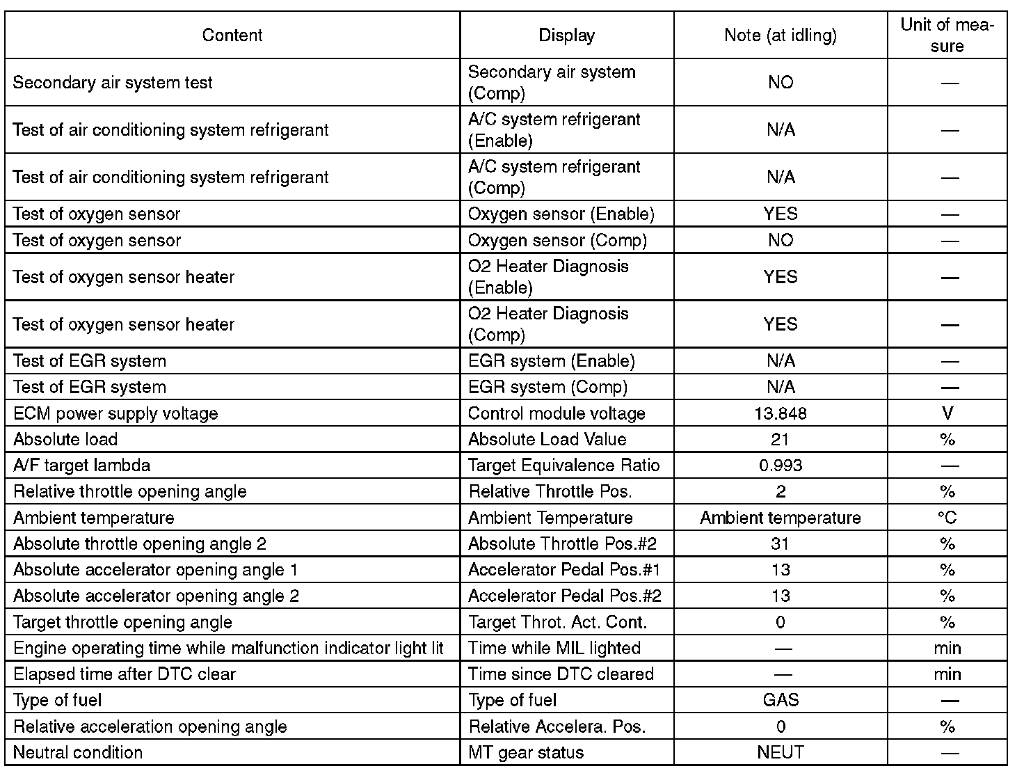 2. READ CURRENT DATA FOR ENGINE (NORMAL MODE)