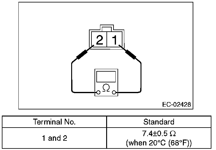 2. Measure the resistance between the oil flow control solenoid valve terminals.