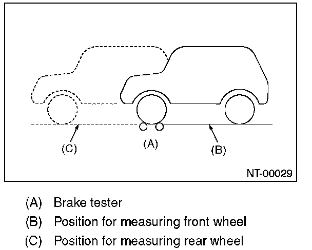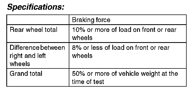 - When measurement is difficult to carry out because both of front wheels are locked, break force measurement in this condition conforms to standard grand total.