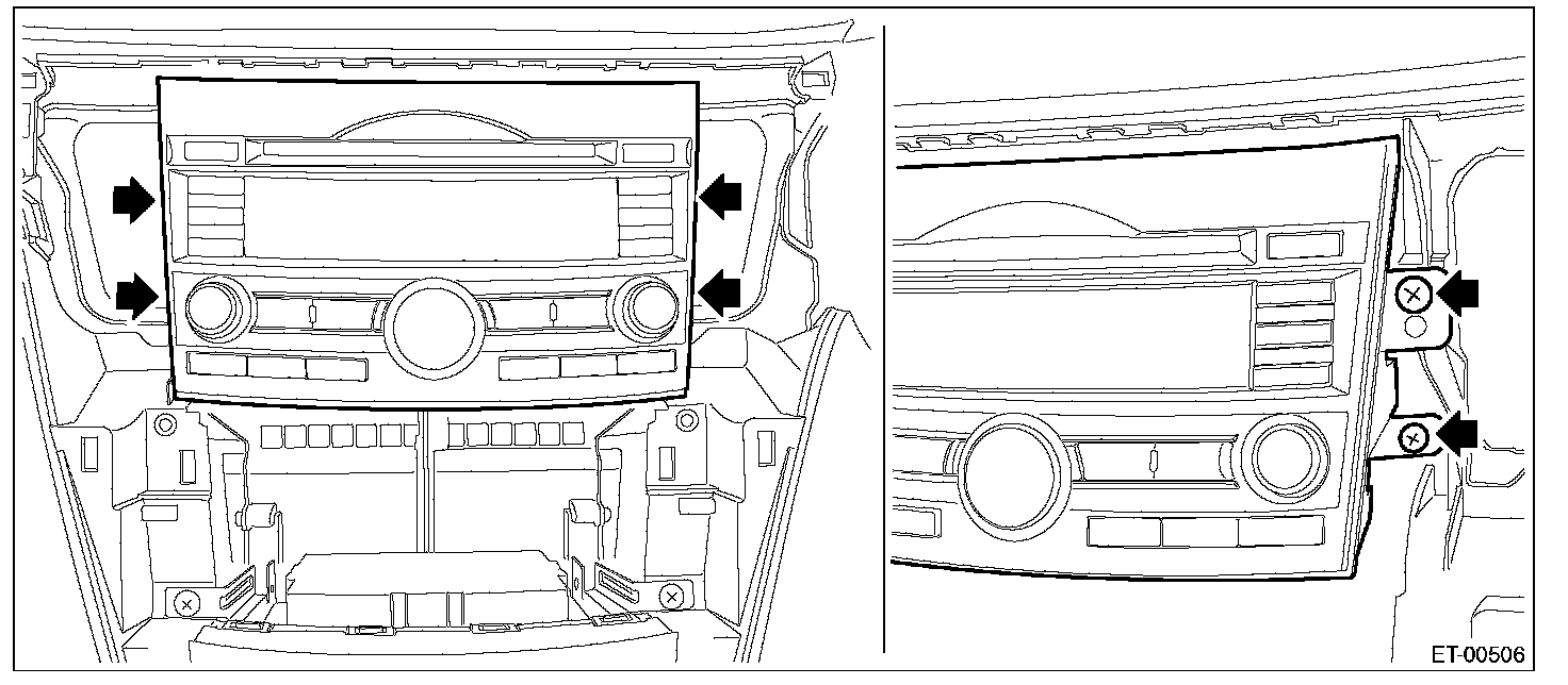 1. Remove the left and right screws, and partially pull the audio out from center console.