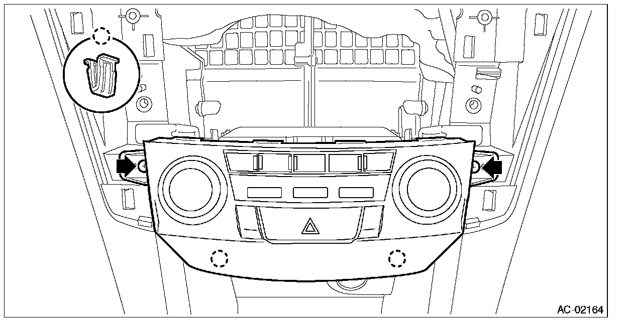3. Insert a finger into the air vent grille and release the left and right clips at the center of the center panel. (C), (D)