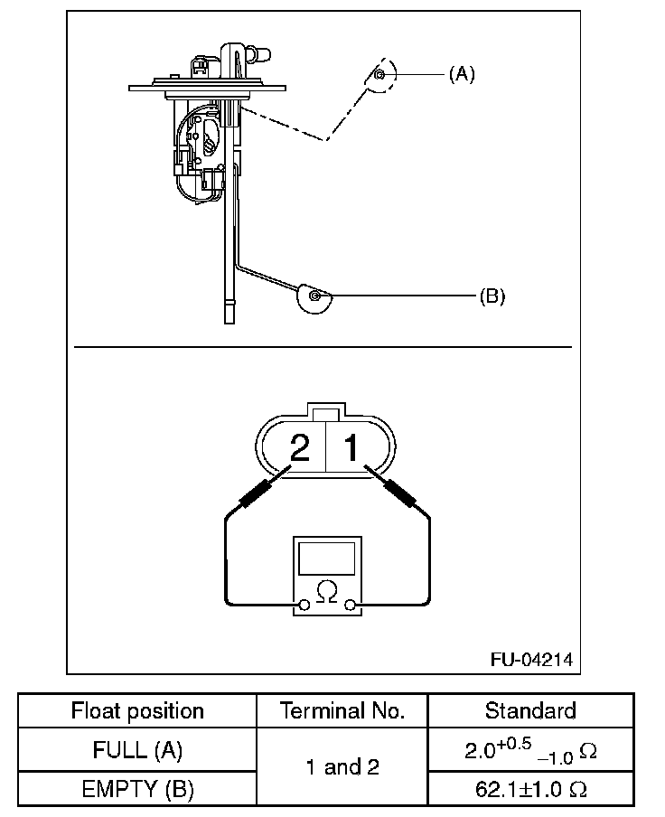 Measure the resistance between fuel sub level sensor terminals.