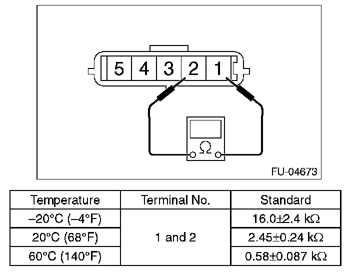 Measure the resistance between intake air temperature sensor terminals.