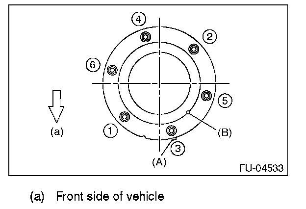 - After tightening the bolts to the specified torque in the order indicated in the figure, install the fuel sub level sensor protector.