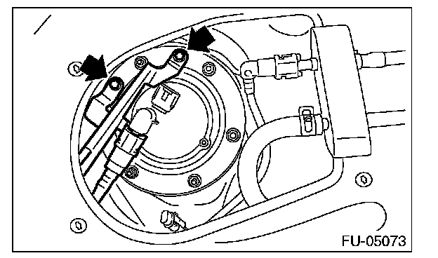 9. Remove the nuts securing the fuel sub level sensor upper plate to the fuel tank and remove the fuel sub level sensor upper plate.