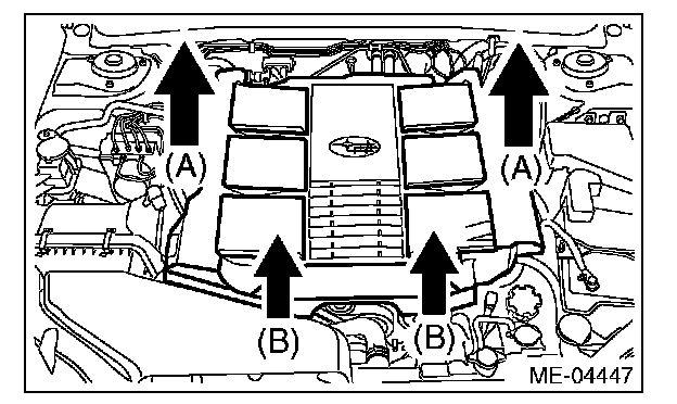 2. Lift up the front side holding two positions (B) while moving it in the forward direction of the vehicle.