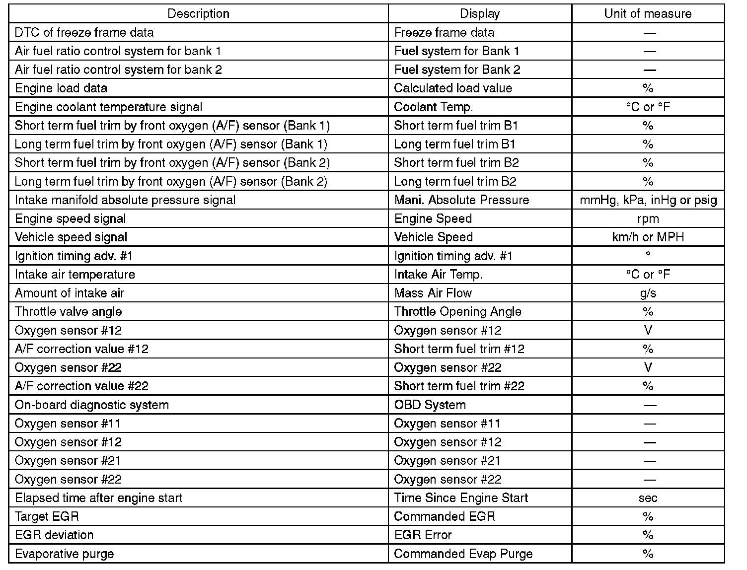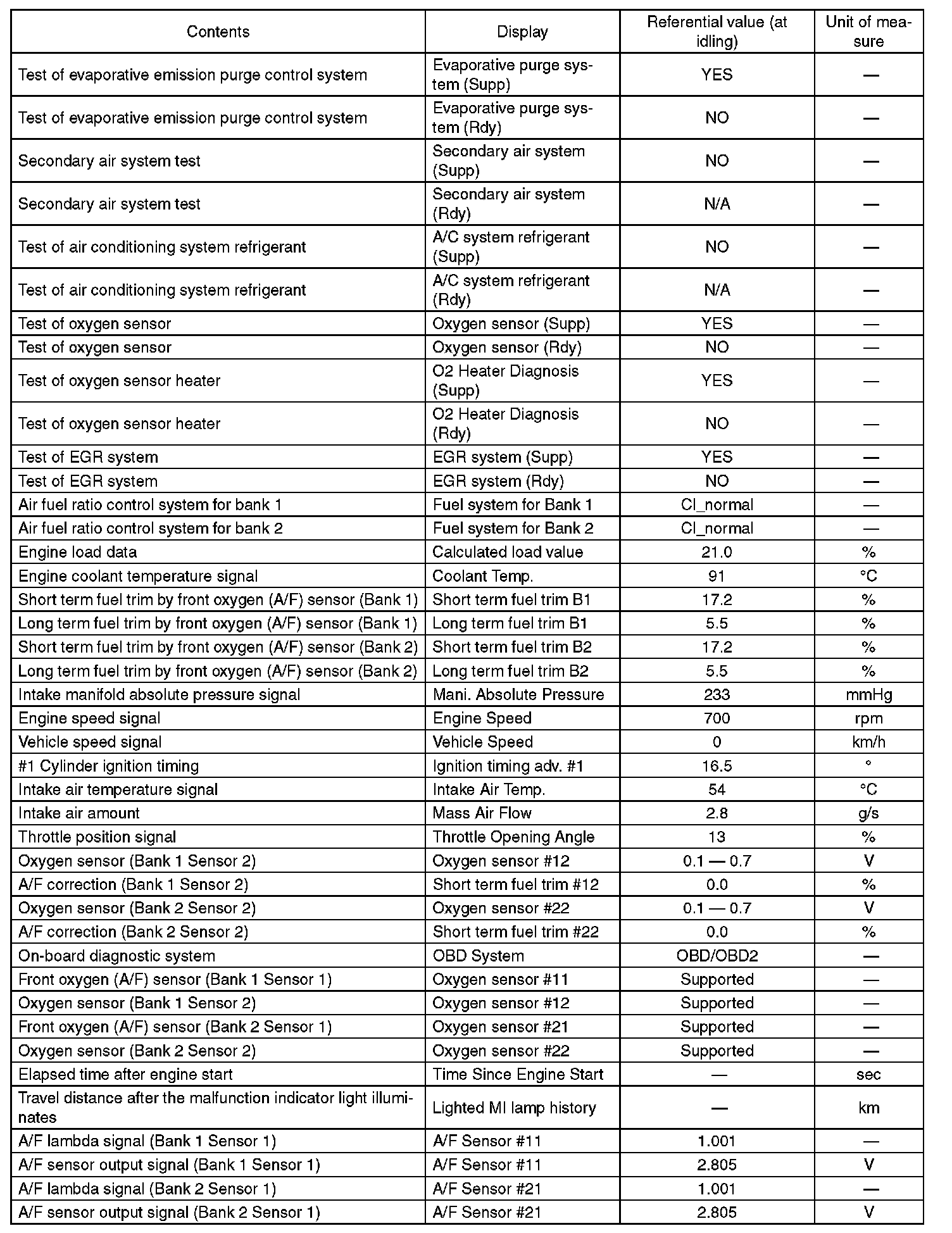3. READ CURRENT DATA FOR ENGINE (OBD MODE)