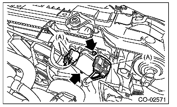 (1) Disconnect the connector (A) from the radiator fan control unit.