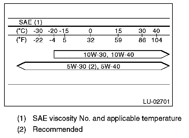 ^ If the vehicle is used in regions of high temperatures or in other severe environments, use oil with the viscosities shown below.