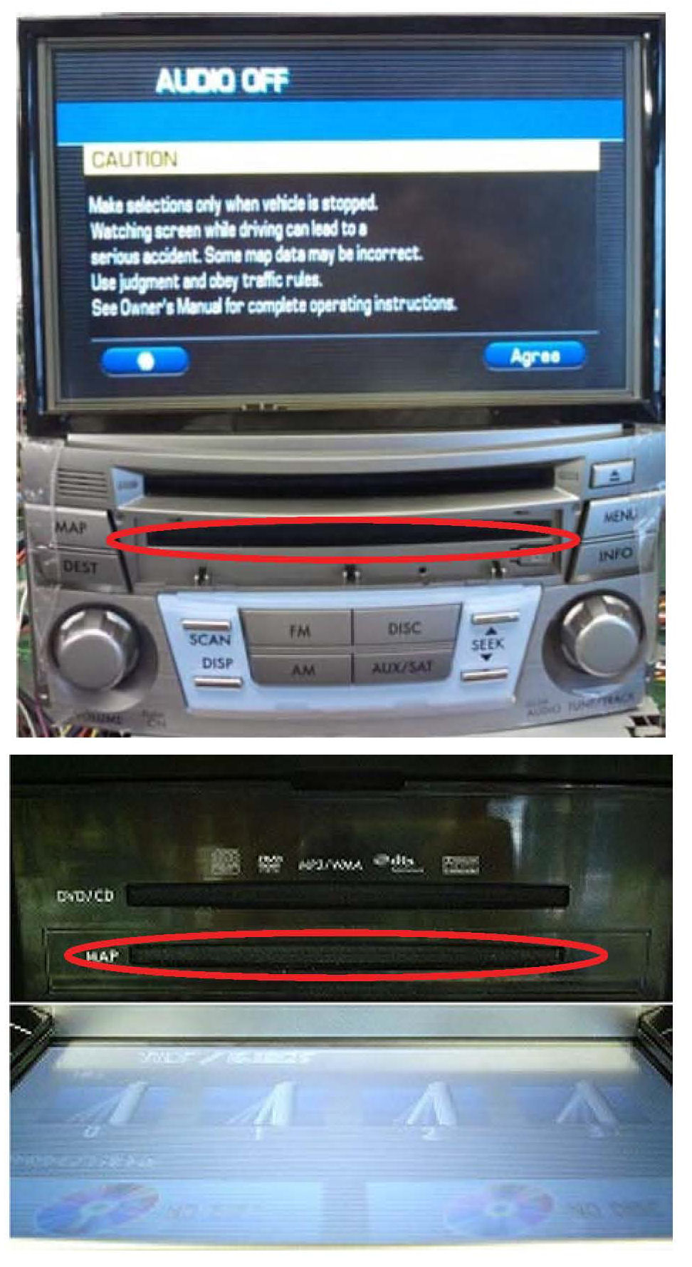 On Legacy/Outback carefully remove map disc cover to access disc.
