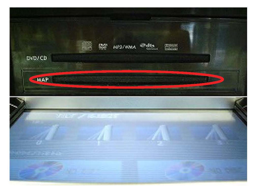 5) Remove the MAP disc and insert the Update disc in the MAP DVD loading slot.