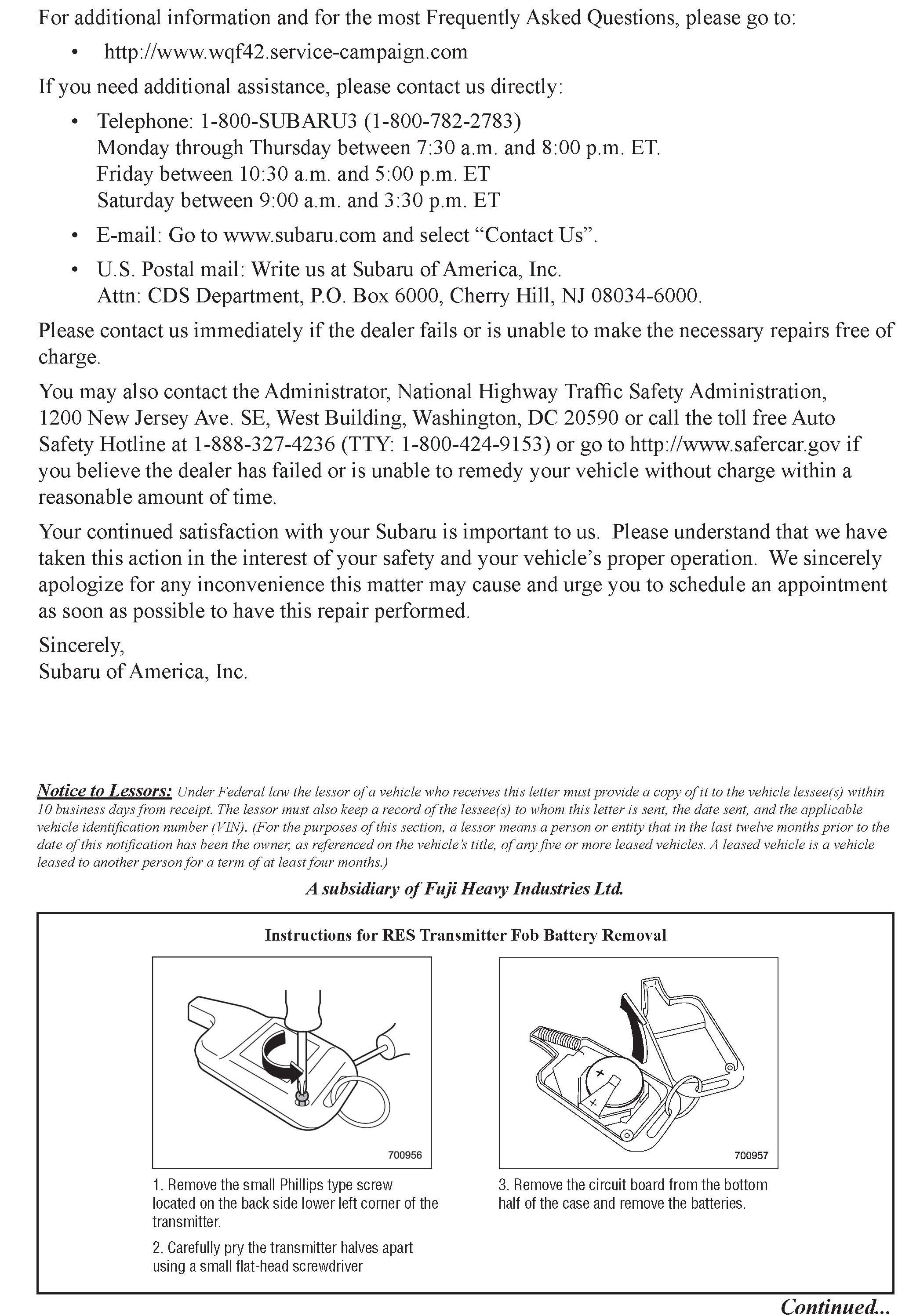 Recall - Remote Engine Starter Fob Replacement