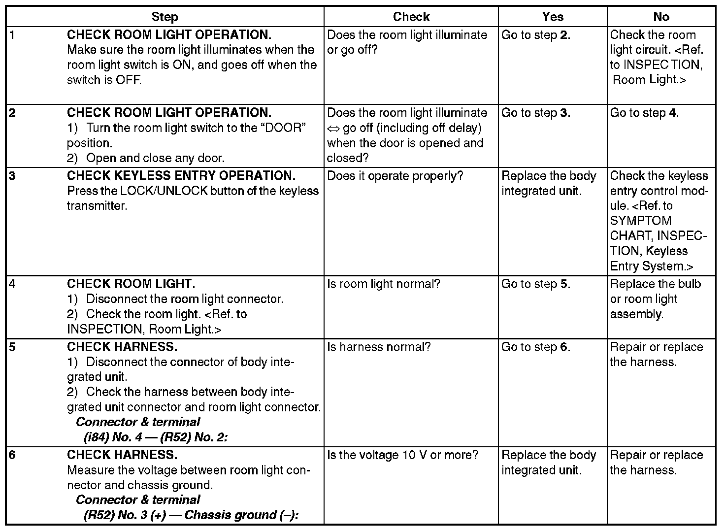 Check Room Light Operation