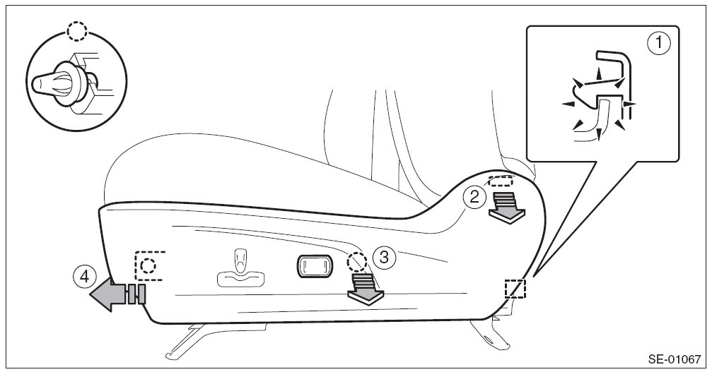3. Remove the clip and release the claw in the front section of the seat side cover